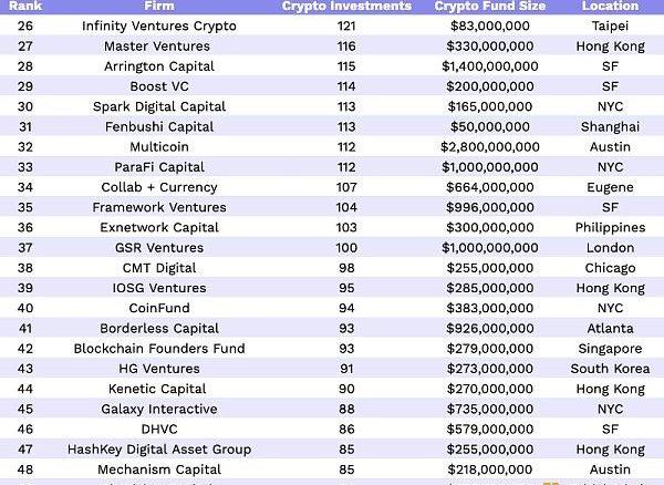 过去12个月最活跃的50家加密货币VC