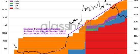 自2022年12月15日以来,所有铭文交易的链大小增加了1.74GB,与当时一直都是444GB的链大小相比增加了0.4%。
