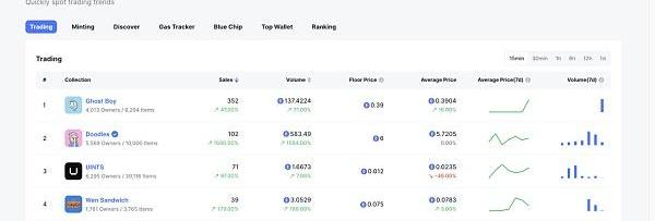 2.排行榜功能:NFTGo拥有较全面的排行榜功能,涵盖各条链,实施交易量,gas消耗等多个维度的排行。