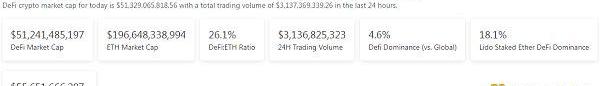 1、DeFi代币总市值:518.55亿美元