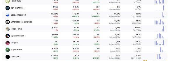 24小时NFT交易量、交易量前十项目数据来源:Coinmarketcap