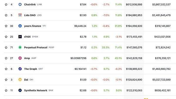 DeFi总市值及前十代币数据来源:coingecko