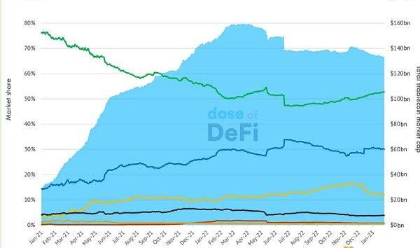 稳定币市场在经历了飘摇动荡的一年后正在慢慢降温。稳定币可以说是加密世界里最成功的产品,或者最起码,是最易被大众市场采用的产品。随着更多实验性算法稳定币的出现,2020年底我们看到了一场巨大的繁荣,这些算法稳定币有望成为永续的稳定机器。它们通过代币分发吸引高收益存款,并通过Curve池轻松地将流动性导向其他稳定币。但自那以后,很多算法稳定币都失败了,其中最引人注目的要属高达400亿美元的Terra崩盘。