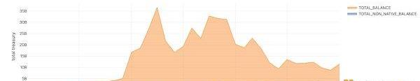 以BitDAO为例(1月底),其NativeToken原生代币占比76.9%,USDT和USDC占比22%。因其自有代币占比过高,国库在2022年中上旬受行情影响下滑72.07%,下旬有所回暖,但11月受FTX暴雷影响继续下滑。