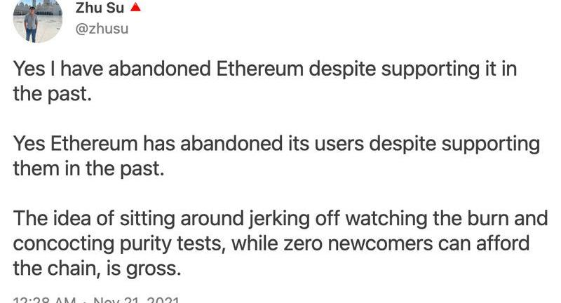 再回到ZhuSu放弃以太坊的话题,有人知道吗?