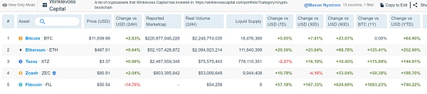 投资机构:Winklevoss Capital