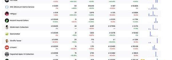 24小时NFT交易量、交易量前十项目数据来源:Coinmarketcap