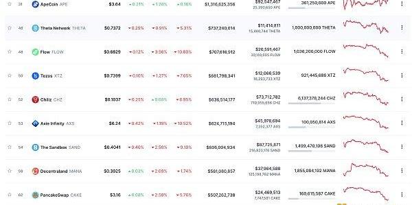 24小时NFT交易量、交易量前十项目数据来源:Coinmarketcap