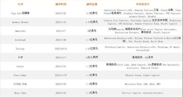 元宇宙大火,资本也是重金在这里投入。报告梳理了2022年十大融资事件。
