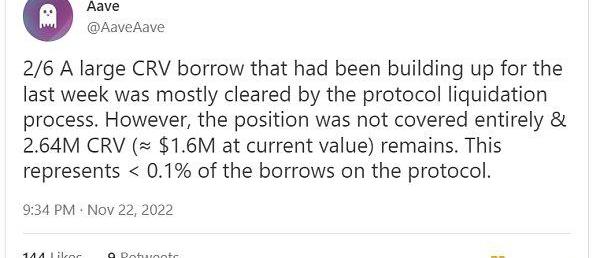DeFi通常与贷款协议的超额抵押方式相关联。我们希望这些协议每次都能清算不良头寸,从无败绩。但出现了这样的重大新闻:因意外发布的内部稳定币白皮书导致了CRV做空,Aave因此产生坏账。