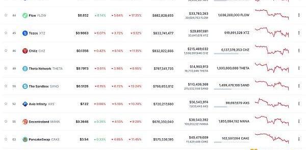 24小时NFT交易量、交易量前十项目数据来源:Coinmarketcap
