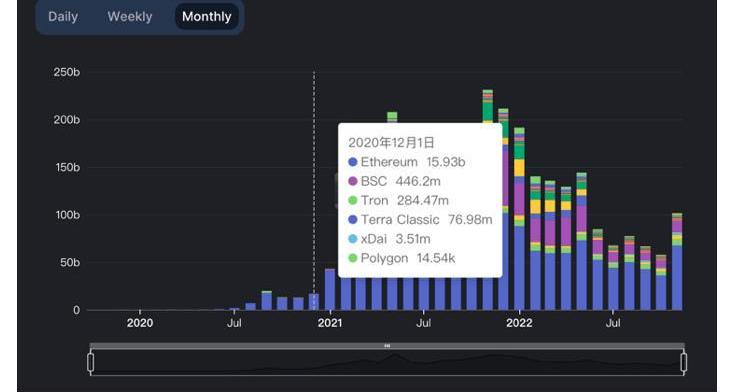 值得注意的是,除ETH外,支撑加密市场的其他底层公链,也在熊市中保持着良好的发展态势。与ETH占绝对支配地位的?2020?年?12?月不同,在?2022?年?11?月结束时,市面上至少有?10?条成熟公链供开发者与用户选用。其中,Arbitrum、Optimism等成熟Layer?2解决方案,以及Avalance、Polygon等在上一轮牛市中兴起的公链,仍然拥有着相对成熟的用户群与开发者群体,承担着百亿美元以上的月成交量。毫无疑问,这为加密市场在下一轮牛市的勃兴打下了坚实基础。