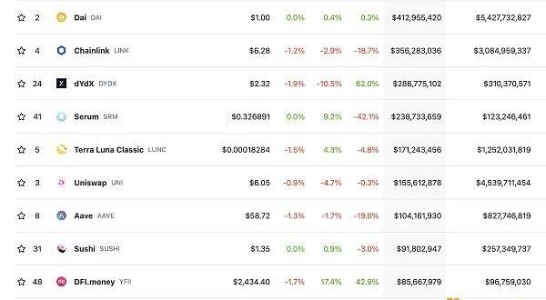 过去24小时去中心化交易所的交易量数据来源:coingecko