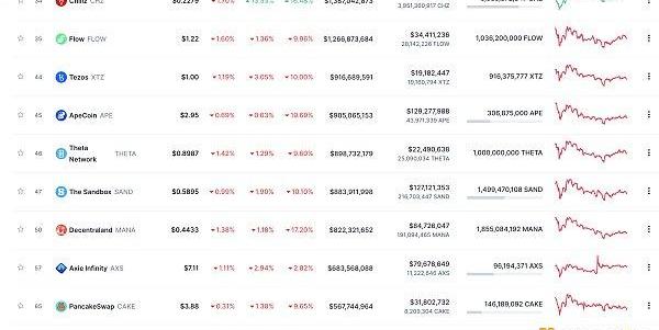 24小时NFT交易量、交易量前十项目数据来源:Coinmarketcap