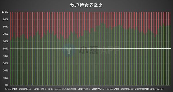 散户持仓方面,多方持仓自1967张回落至1851张,空方持仓自434张同步回落至380张。散户持仓的多头头寸自历史高点回落,虽然多空双向在最新统计周期中出现双降变化,但是这类账户的净多优势过于明显,所以散户对于后市的强烈看涨态度实际上并没有发生明显变化,散户投资者仍然是市场多头最坚定的拥趸。