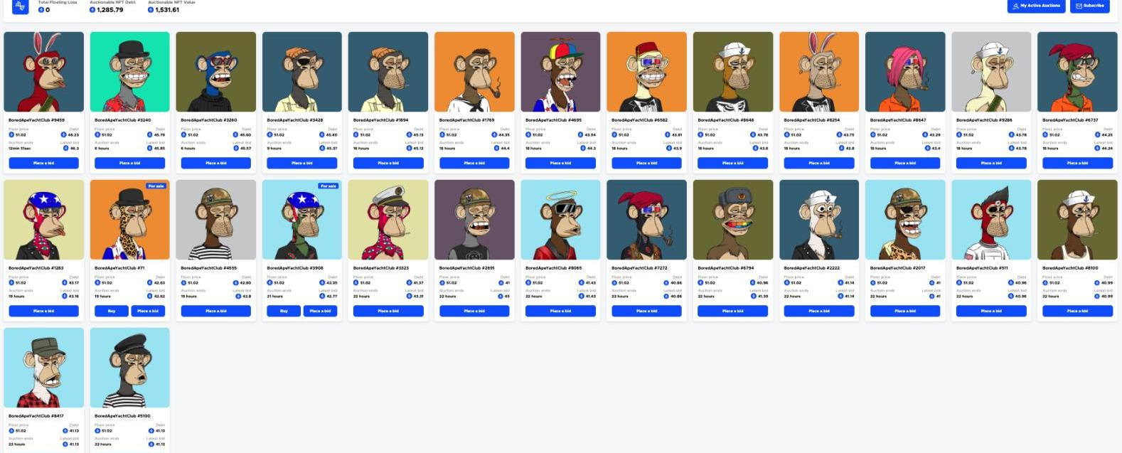 1=/(借款+利息),即借款人的借出金额只要大于40.816ETH就面临清算,目前在BendDAO中清算拍卖的BAYC已达28个: