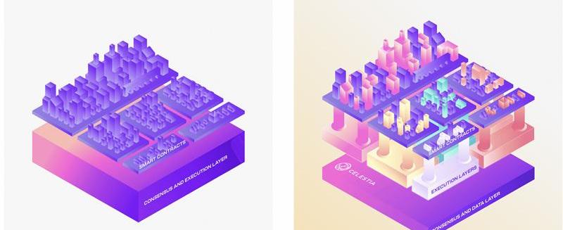 其实二者并不冲突,以往我们熟知的rollup仅作为执行层存在的「纵向扩容」,而以Celestia为首的模块化区块链方案以rollup为基础实现了结算层的模块化,通过构建模块化堆栈的」横向扩容「让打破「区块链不可能三角」成为可能。
