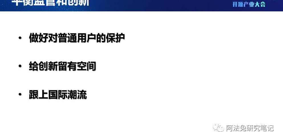 最后,全世界各个国家近几年的主题,都是要平衡好监管和创新。对于各国,保护普通消费者是非常重要的立场,因为我们会发现一些领域,特别是金融,今天所有我们看到法律法规都是有着它存在的道理的,通常是血的教训,核心就是要保护普通用户。