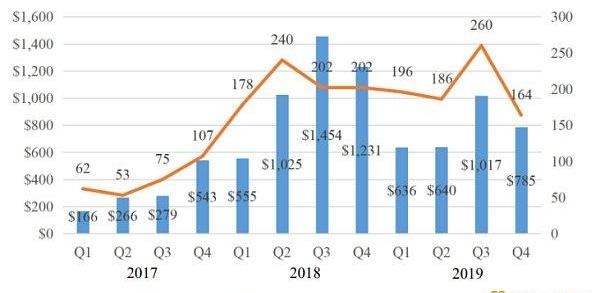 2017-2019行业投融资数据统计数据来源:火币研究院