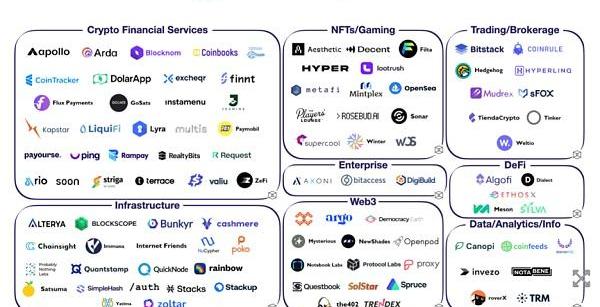 YCombinator作为知名的孵化器,有一批优秀的区块链企业从中毕业。当中包括了知名NFT交易市场OpenSea、投资组合跟踪和会计软件CoinTracker,以及比特币智能合约层Stacks等等。几乎一半的YCombinator加密校友项目属于金融服务或基础设施类别,而Web3以及NFT/游戏则紧随其后。