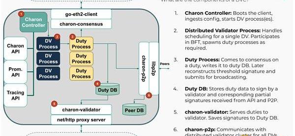 Charon:Charon是ObolNetwork的分布式验证者客户端,也是启用信任最小化验证的第一步。Charon支持容错、高可用性验证,使一群人能够在多台机器上共同运行验证者,而不是在单个机器上运行。