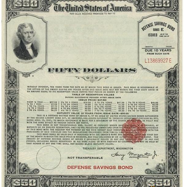 美国在1941年至1945年间发行了价值1860亿美元的战争债券。下图是其中一张。