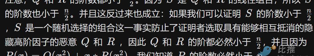 流程中的每步都可能会引入一些“误差”,但如果您进行了足够多的检查,那么总误差将低到你可以证明P(x)在至少80%的下标处等于一个阶小于n的多项式。这足以满足我们用例的需求:如果你想在zk-SNARK中作弊,你需要对少数值进行多项式承诺,其多项式的取值会在多处不同于真正阶小于n的多项式,因此任何对其进行FRI承诺的尝试都会失败。