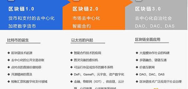 在智能合约的带动下,区块链技术正一步步向金融、物联网、供应链、云计算、公益慈善、公共服务等领域渗入。不仅如此,区块链在社会生活中的应用前景更为广泛,特别是在政府、健康、科学、文化和艺术等领域。不仅会有去中心化的应用,去中心化自治组织出现,去中心化自治公司也会出现,最终走向去中心化自治社会。当区块链技术逐渐被应用于社会治理时,我们将迎来区块链3.0时代。区块链全面应用的时代终将会到来,一个大规模的协作社会将被构建。