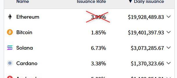 但距离它并不遥远。但这真的很重要吗??即使在通货膨胀最严重的情况下,ETH的通货膨胀率也低于其他代币。