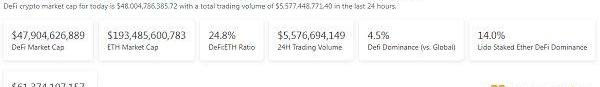 1.DeFi代币总市值:479.04亿美元