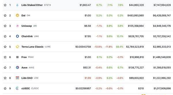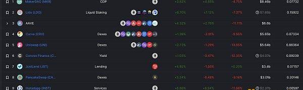 DeFi项目锁定资产前十排名及锁仓量数据来源:defillama