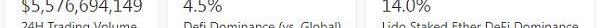 2.过去24小时去中心化交易所的交易量55.76亿美元
