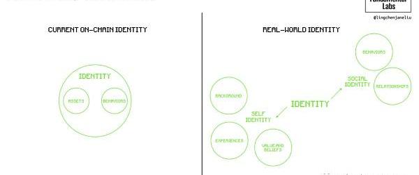 基于稀缺性、声誉或真实性的市场需要与个人相联系的身份。身份这个词有多重含义:一是表示主体,即一个人与另一个人不同的概念,即一个人的身份证上的身份,对应于"身份";二是表示地位,即对一个人与另一个人之间关系的描述,即社会中的地位或状态,对应于"地位"。到目前为止,基于地址的身份只关注状态,特别是合同状态,它显示了地址所拥有的资产。为了建立更丰富的社会应用,拥有显示人类之间社会关系的关系性身份是不可或缺的,关系状态只有在人与人互动时才能发生。