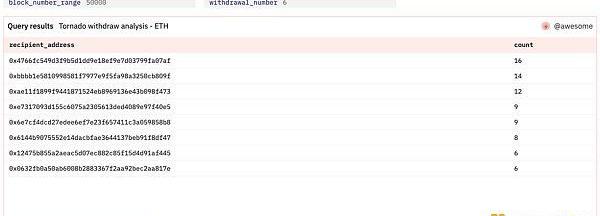 记录目前已知的信息,已知信息包括转入Tornado.Cash总数,第一笔Tornado.Cash存款时间,第一笔Tornado.Cash存款的区块高度。
