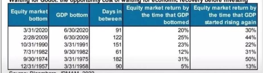 鉴于疫情后激进的货币政策,目前的情况非常独特。从历史上看,在过去的经济衰退中,如果你在GDP负增长的季度投资并在GDP开始复苏时获利了结,你的平均回报率为31%。
