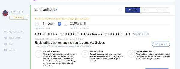 看了这么多一定许多读者跃跃欲试,那么该如何获得一个属于自己的ENS域名呢?