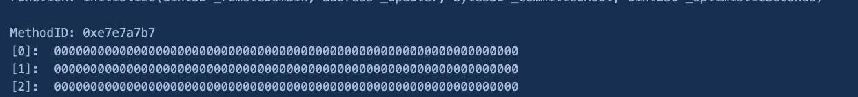 7,幸运的是,有一种简单的方法可以检查这个假设。知道没有被证明的消息的根是0x00,因为messages将未初始化。接下来所要做的就是检查合同是否会接受它作为根。