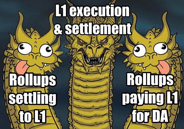 以太坊可以处理其中的每一个问题。它提供了统一的DA、共识和结算层,具有普遍的执行力。当你在L1上进行交易时,以太坊就像任何单体链一样行事。另外,rollups可以处理执行,由以太坊提供DA、共识和结算。