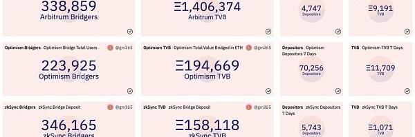 评估这些产品的消费者必须平衡特定用户群的规模和它所要实现的特定功能。一个为特定目的而打造的平台,如果没有用户,那就没有用。L2BEAT可以提供一些关于这些链上活动的数据。下图是由gm365制作的Dune图表,有四大L2的很多相关指标。