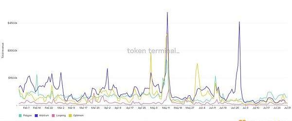 Tokenterminal提供了一些非常有趣的统计数据,在过去180天内,这些L2项目的协议总收入情况如下: