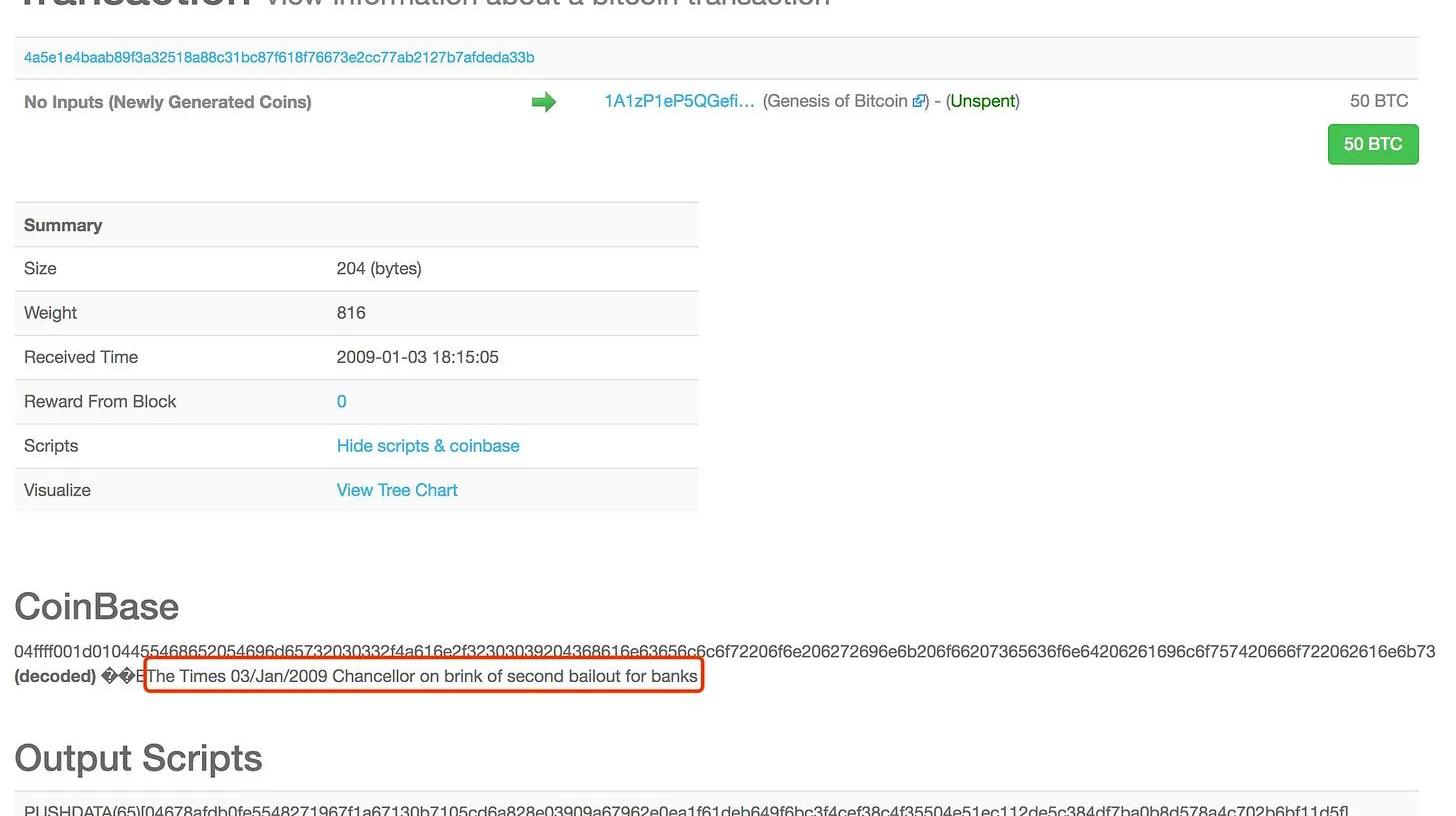 金融产品可以说是第一个诞生在区块链上的需求,2009年1月3日,比特币的创始人中本聪在创世区块里留下一句永不可修改的经典之话:“TheTimes03/Jan/2009Chancelloronbrinkofsecondbailoutforbanks.”