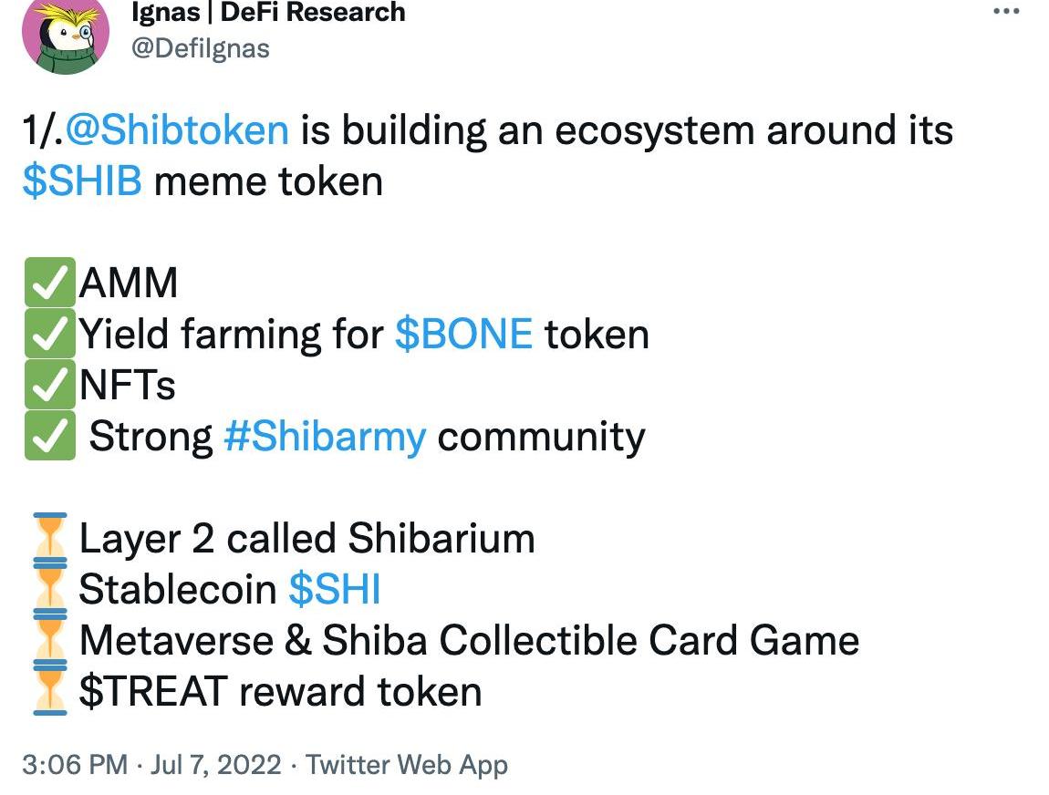屎币围绕其$SHIBmeme代币正在构建生态系统:自动做市商$BONE代币的挖矿非同质化代币强大的Shibarmy社区第二层网络称为Shibarium稳定币SHI元宇宙和Shiba收集卡牌游戏奖励代币TREAT
