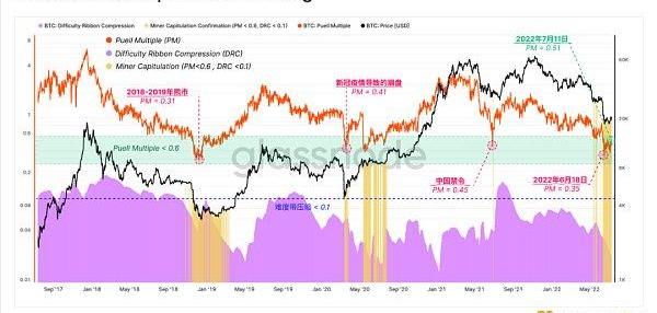 Puell倍数?追踪以美元计价的矿工总收入,相对于1年的平均值。我们可以发现,目前比特币矿工的收入只达到历史12个月平均水平的49%。这意味着矿工的收入压力可能是一个因素。