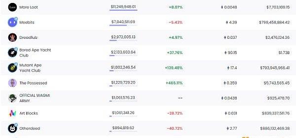 24小时内销售涨幅前十的NFT数据来源:NFTGO