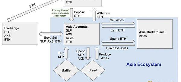 除了游戏不够有趣之外,大多数受欢迎的链戏所使用的核心模式也存在问题——边玩边赚。让我们以AXS为例。用户可以购买一个Axie,或者他们可以使用AXS+SLP来繁殖Axie。玩家用Axie参与战斗并在获胜时获得SLP。