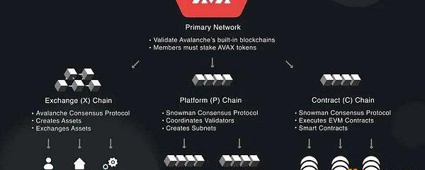 Avalanche的主要网络由三个区块链组成——X、P和C链。每条链在维护Avalanche的完整性和创建新资产或区块链方面都有不同的用途。