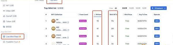 实时Freemint数据,我们第一时间爬取区块上最新的freemint合约,时间幅度每分钟级别更新。我们提供MINTFOMOLevel指标,通过计算一分钟内链上mint数量级别,算法提供Fomo情绪指数,高FOMO情绪的NFT,获益胜率高达85%。