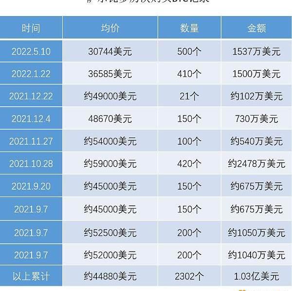注:由于萨尔瓦多方面通常至宣布购买BTC的数量,因此均价与金额都依据发布时间的BTC价格预估。