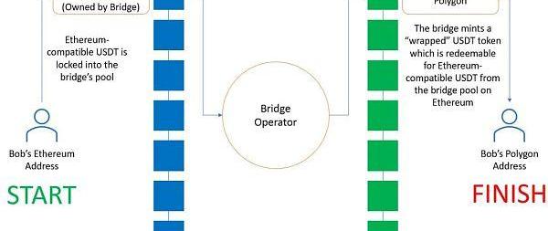为了理解基于池的桥是如何工作的,现在让我们举个例子:一个想要将USDT从以太坊转移到Polygon的用户。用户首先将以太坊版本的USDT存入以太坊上的指定的合约地址(也就是池),并指定该USDT应归属于的Polygon网络上的接收地址。桥使用此信息将Polygon版本的USDT转移到指定的Polygon地址。