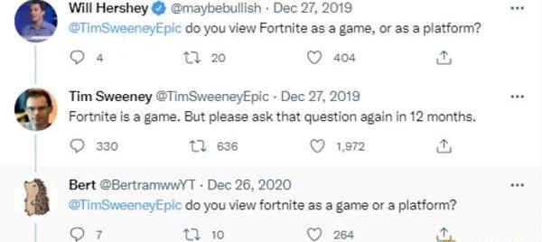 Web3游戏可能会继续存在的另一个原因是,它们释放了完全不同的经济因素。交易员/做市商、投机者和公会可以帮助创造对发行商和游戏玩家都有利自我维持的生态系统。一款理想的游戏将演变为一个平台,而不是只卖一次的物品。独立的第三方用户将能够创建服务、开发体验并进行销售。你觉得这太牵强了吗?看一下他们在推特上的互动。